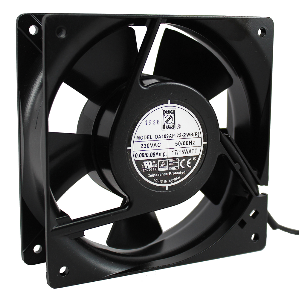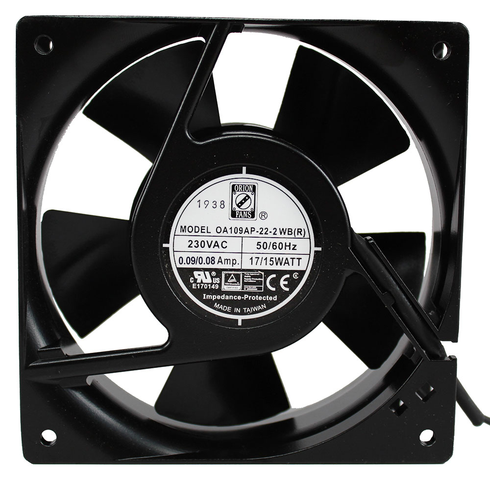 AC Fans Axial Fan, 120x120x38mm, 230VAC, 85CFM, 13W, 45dBA, 2750RPM, Ball, Lead Wires