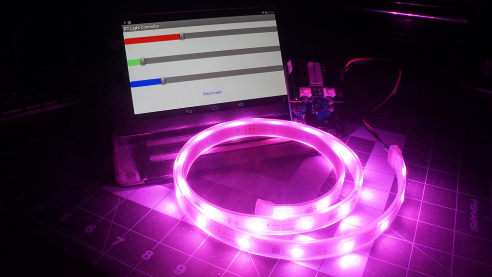 Now, put it all together. Power up the Arduino, launch the app on your Android device, and pair/connect the two devices. Now, start playing with the sliders and watch the rainbow dance in front of your eyes. So, what are you going to create with your new found Android skills? Leave a comment and a link to your projects in the comments below.