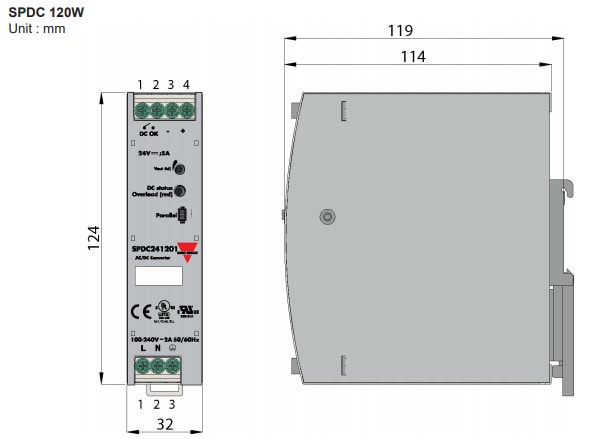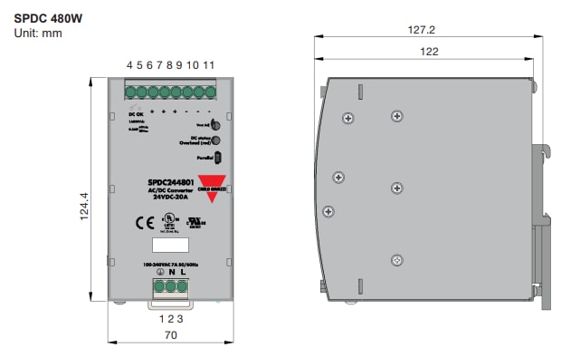 - Bi-colour LED for status and DC-OK relay contact