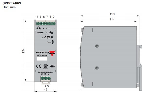 Carlo Gavazzi SPDC Single Phase Power Supplies are designed to achieve high energy efficiency of up to 94% and come with a built-in Power Factor Correction (PFC) circuit. This built-in PFC adjusts the power factor to 0.99 at 110VAC and 0.95 at 230 VAC. These power supplies are available in 120W, 240W, and 480W variants with a universal input voltage range of 85VAC to 264VAC and 130VDC to 350VDC. The SPDC power supplies feature a parallel function, 150% power boost, over-voltage, overload, short circuit, and over-temperature protection. These DIN rail mount power supplies are ideal for applications that require high efficiency, high safety standards, and high PF corrections.